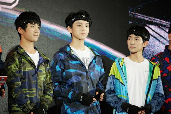当天TFBOYS三小只同样是一身运动装亮相,很少如此装扮的三小只看上去动感十足。上台后居然非常活泼的去“调戏”严肃的猎人们。当猎人们威武雄壮的直立在台上时,三小只犹如看到偶像般,瞬间变为粉丝扑上去,举着“V”不停跟猎人合影!偶像也有当粉丝儿的这一天啊。