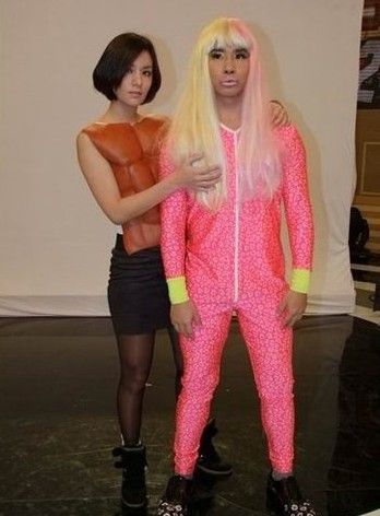 西洋绕舌搞怪天后妮琪米娜这也是欧弟第一次穿紧身衣,里面只穿一件四角裤和贴身上衣,非常不习惯,整个人变得超害羞,一向落落大方的他,也难得出现羞赧表情,但为了完全拷贝MV情境,欧弟不停眨眼抛媚眼,眨到眼睛都快脱窗,相当爆笑。