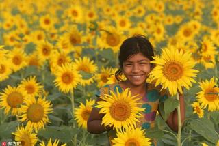 孟加拉国儿童徜徉花田笑容灿烂