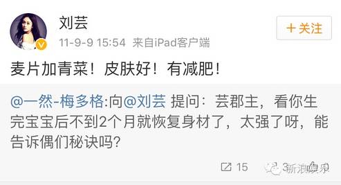 刘芸在生完孩子之后,也有减肥!吃的是麦片加青菜。