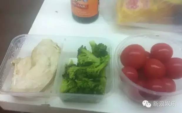 午餐除了鸡胸肉沙拉,还有一杯减肥饮料!她下午三点左右还会加餐!