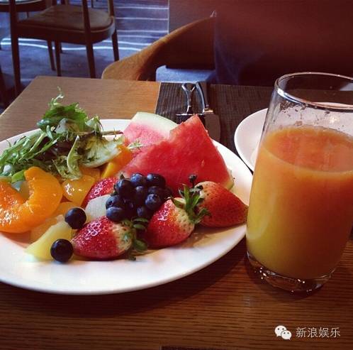 倪妮为了练出马甲线,曾在ins上晒过早餐!吃的是水果+橙汁。