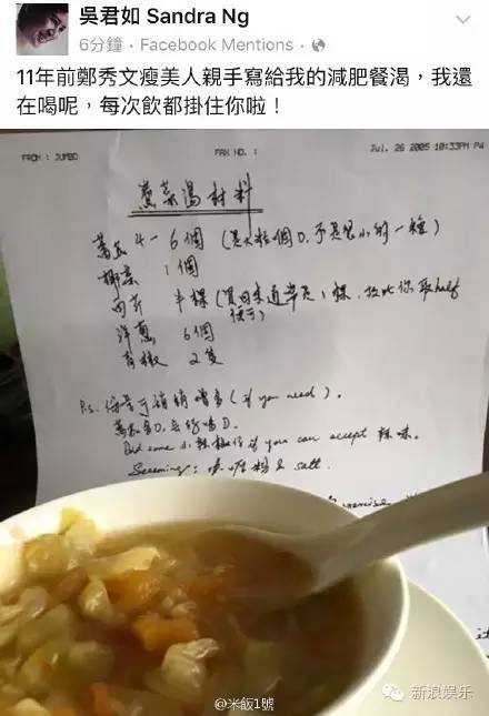 吴君如曾经晒过郑秀文给她的减肥食谱,基本上都是椰菜、西芹、青椒这种蔬菜!当然,我看到6个洋葱的时候,我疯了!