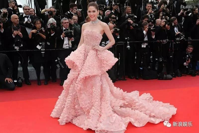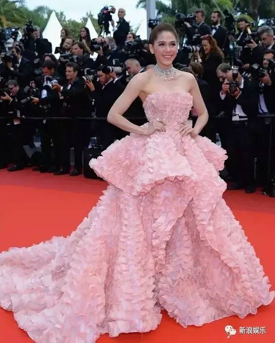 泰国某女星的戛纳红毯照。