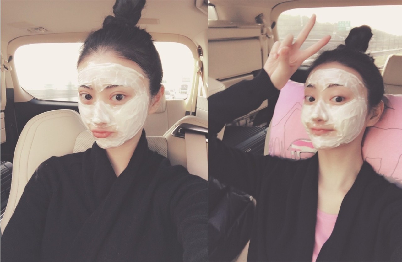 身为明星想要有质感的皮肤,平时也要注重保养,拍摄间隙景甜也是敷着面膜呢