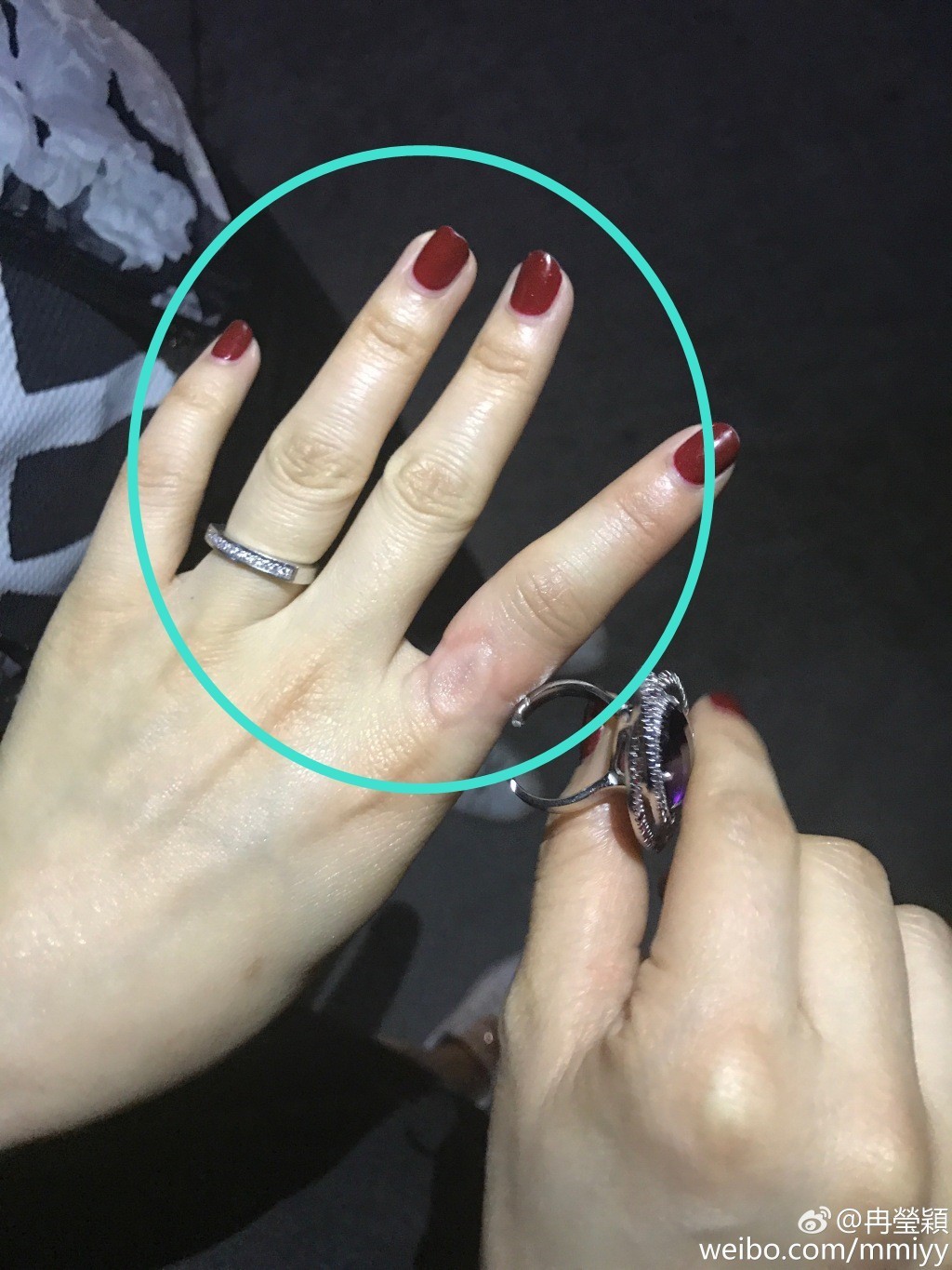 冉莹颖的的手指比较胖,而且指节粗短,看上去有点像暴发户的手