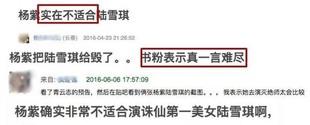 因为杨紫参演《青云志》陆雪琪的这个角色时,就曾被很多书粉拒绝过,原著里面对陆雪琪的描述是“天资胜仙,风华绝代倾世颜”,而网友都吐槽说杨紫不够仙气~