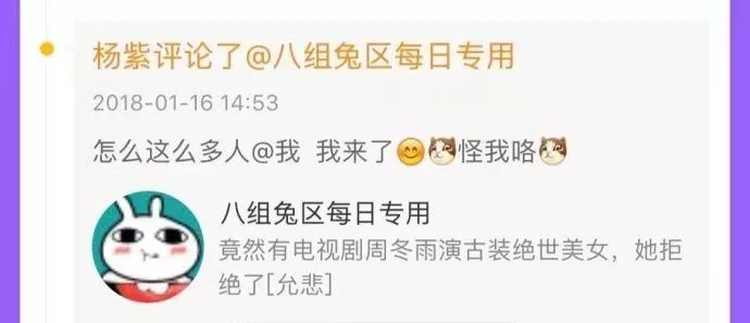 采访公开之后,很多网友在评论里@杨紫,偏偏她又是个很爱回复别人的girl,所以她看到之后回了这么一句:我来了,怪我咯?