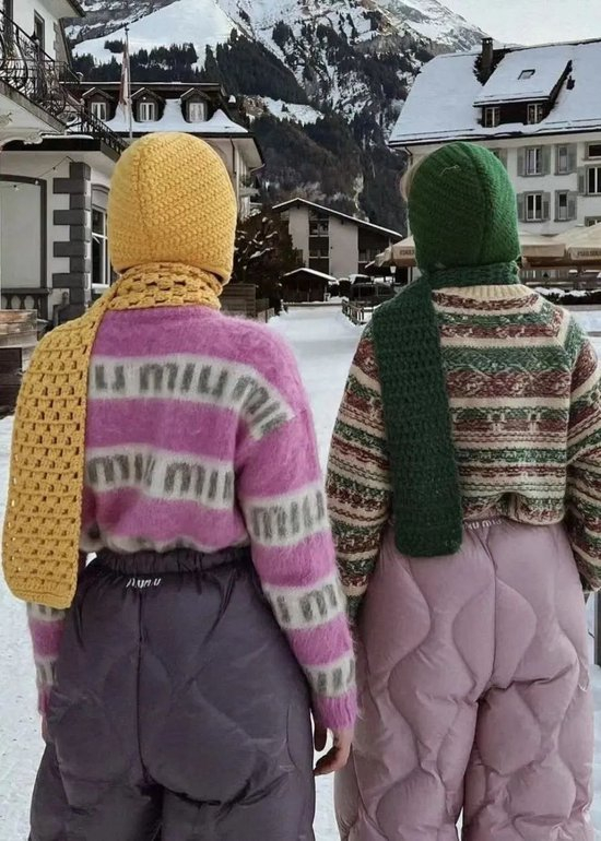 传统的巴拉克拉法帽的隐秘性极强,大部分都是套头的设计,只露眼睛。把脖颈处的下摆随意地叠搭在厚重的外套里,层层暖意袭来。