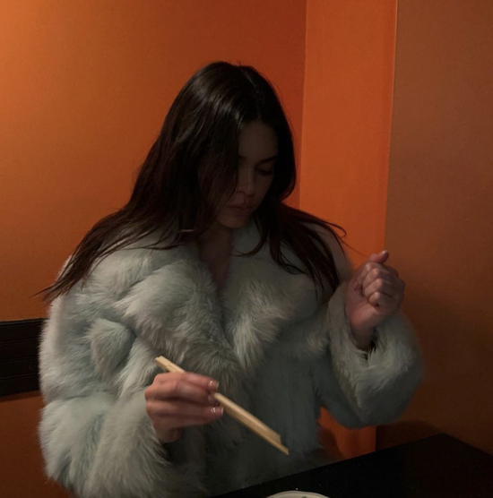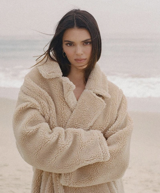 像这种长款的浴袍款式,特别容易有显得臃肿或老气的风险,最好像Kendall这样系上系带。