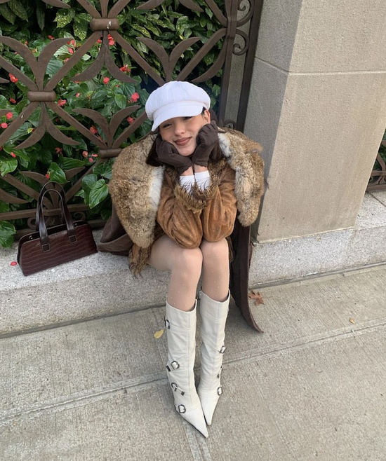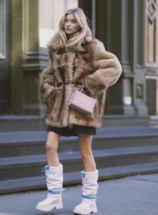 要论及膝靴+毛绒外套的适配性,如果说保暖是100%,时髦火辣度简直直冲200%。