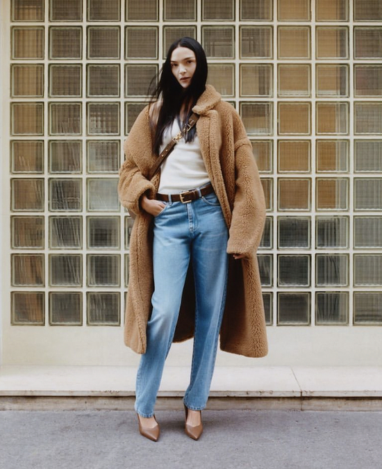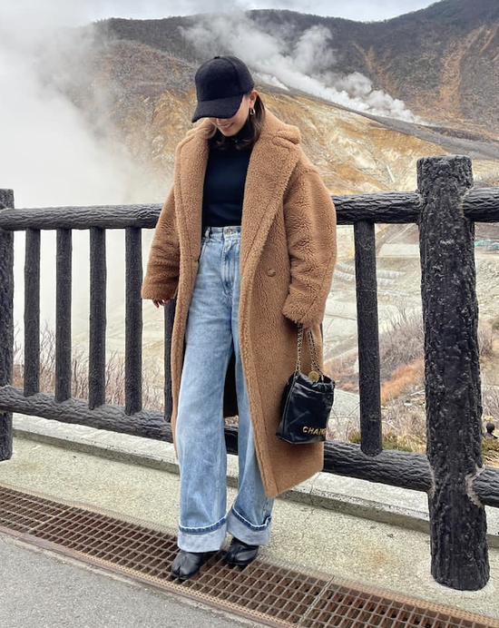 泰迪熊大衣采用茧型设计,对身材包容度很高,搭配微喇裤或是紧身裤,突出腿部线条,上松下紧的小心机丝毫不会显胖。
