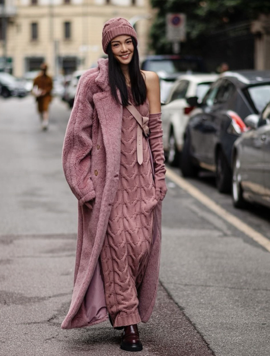 不甘于沉溺于冬季常规“黑白灰”的辣妹还可以大胆穿一些高饱和度色彩的款式~