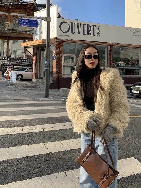 如果不想身上大面积地被毛毛包裹,局部采用毛绒配饰也可以起到兼具时髦与保暖的效果,毛绒包在冬天就是不可忽略的氛围神奇。
