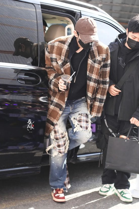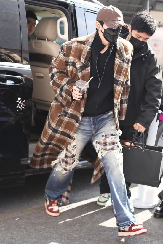 最近在剧组上班的邓为把几件美拉德元素单品轮流混穿,可以说是把单品利用发挥到了极致,首先是这件Anteriorloved 格子西装式呢大衣出镜率极高,内搭黑色衬衫和 T恤以及 Hello September 建筑感叠褶宽松牛仔裤,脚穿 RZAAZ 米奇大头反绒磨砂德比鞋,佩戴 Calvin Klein 炭灰刺绣棒球帽。