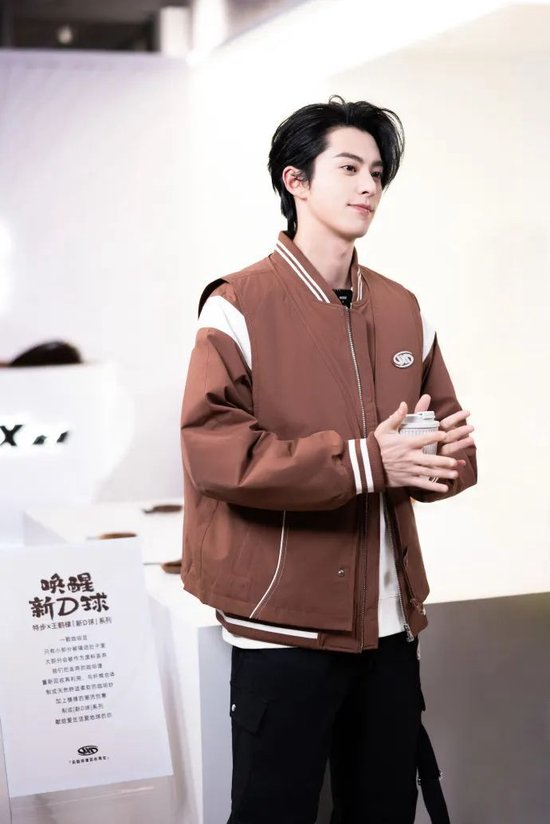 王鹤棣全身来自特步的穿搭也非常美拉德,他身穿特步王鹤棣联名款新D球咖啡章棒球外套内搭木莓棕马甲和环保卫衣,脚穿特步 X70 MAX 运动鞋,美式复古学院风少年感十足。