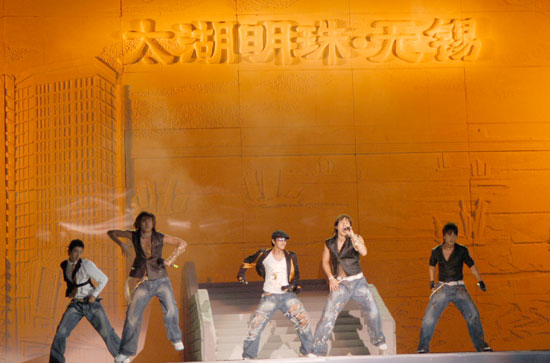 ![]() 表演将晚会带入高潮 ![]() 组合成员卖力演唱 ![]() HIM组合边唱边跳 ![]() 舞台效果非常好 9月23日傍晚,2005新丝路世界模特大赛总决赛在中国江苏省无锡市无锡体育馆拉开帷幕。来自36个国家和地区的57名世模选手在经过了赛前两周紧张的训练之后,虽然疲惫但同时也收获了很多。无锡的观众以及来自世界各地的媒体云集在无锡体育馆都拭目以待,看今晚花落谁家。图为韩国组合HIM给观众带来劲歌热舞。 摄影:王建庆 版权所有,如需转载,请注明出自新浪!